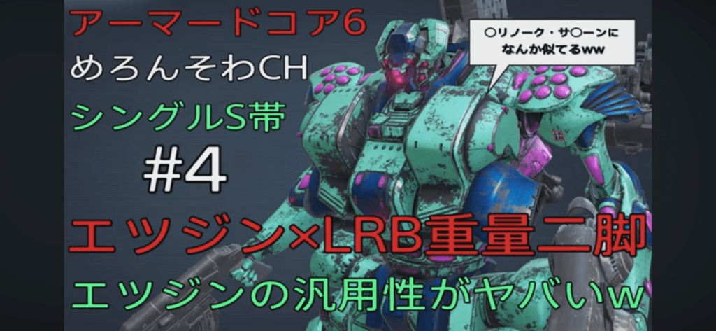 皆様こんにちは! めろんそわです(^^) 皆様はアーマードコ… 続きを読む: アーマードコア6 めろんそわCH #4 エツジン×LRB重量二脚 - アーマードコア6 #3 LRB重量二脚が私は好きだ…!シングルマッチSめろんそわCH